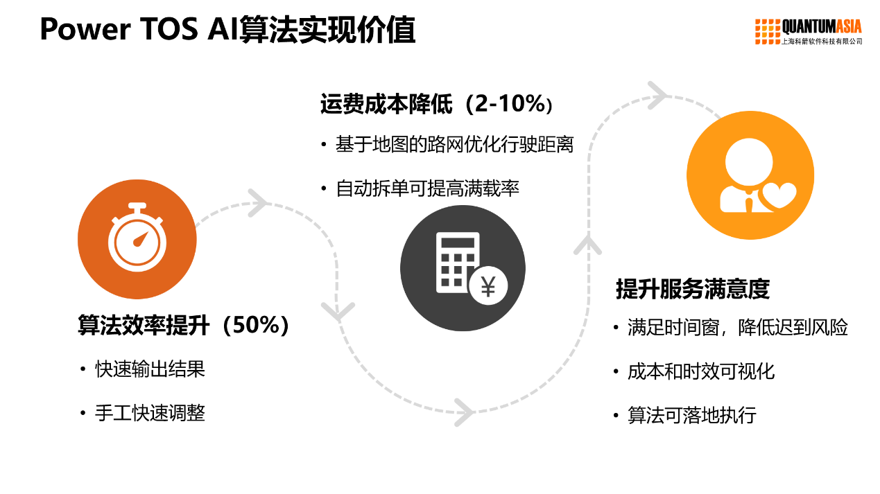 科箭運輸優化TOS云應用科技的力量,發掘業務數據的價值,能夠滿足客戶復雜的業務需求,適應不同的業務場景與客戶業務需求波動變化,幫助客戶實現最大收益、最小成本、最少車輛/里程的目標,最大化節省物流運輸成本,實現降本增效。