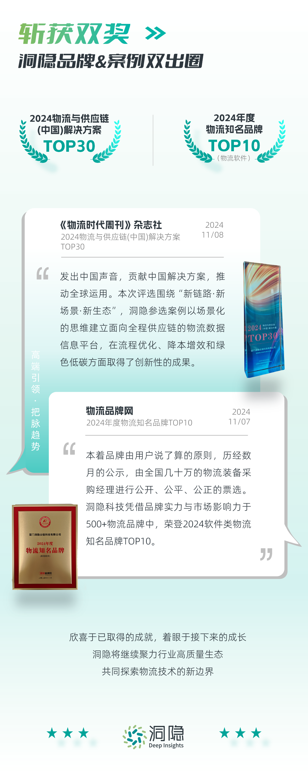 洞隱品牌&案例斬獲雙獎,洞隱將繼續聚力行業高質量生態,共同探索物流技術的新邊界。