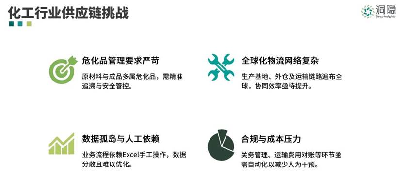 化工行業的特殊性決定了它的供應鏈的復雜性,對物流和倉儲的管理要求更為嚴苛,化工企業的供應鏈管理面臨著諸多挑戰: