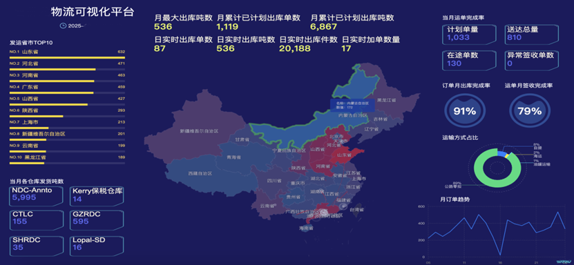 ①供應鏈控制塔:通過可視化看板與自定義報表,實時監控倉儲作業、運輸時效等核心指標。