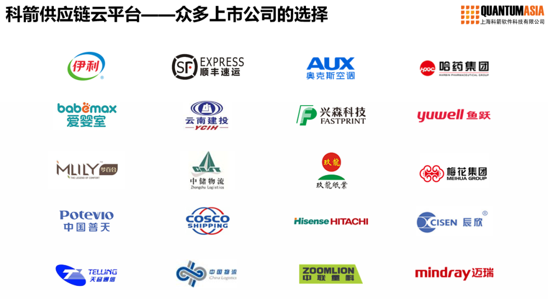 科箭在供應鏈領域深耕17余載,系統內置了很多行業業務的最佳實踐,TMS云基于云端的敏捷性,產品的高度靈活性、易集成性和專業的服務團隊,獲得了梅花集團的認可。此前,科箭TMS云產品已經在哈藥集團、羅氏診斷、伊利集團、光大乳業、衛崗乳業、21Cake、家樂福、麥德龍、萬緯物流等眾多需要冷鏈運輸保障的醫藥、零售、生鮮等企業得到深入應用,為客戶帶來了可觀的價值回報。