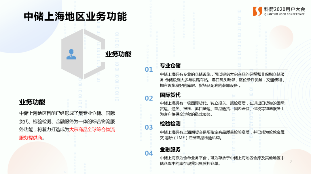 在以“重構(gòu):數(shù)鏈新時(shí)代”為主題的科箭2020用戶大會 · 上海站上,中儲上海信息部負(fù)責(zé)人陳廣俊先生作了題為《大型國有倉儲企業(yè)的云上之路》的主題演講。