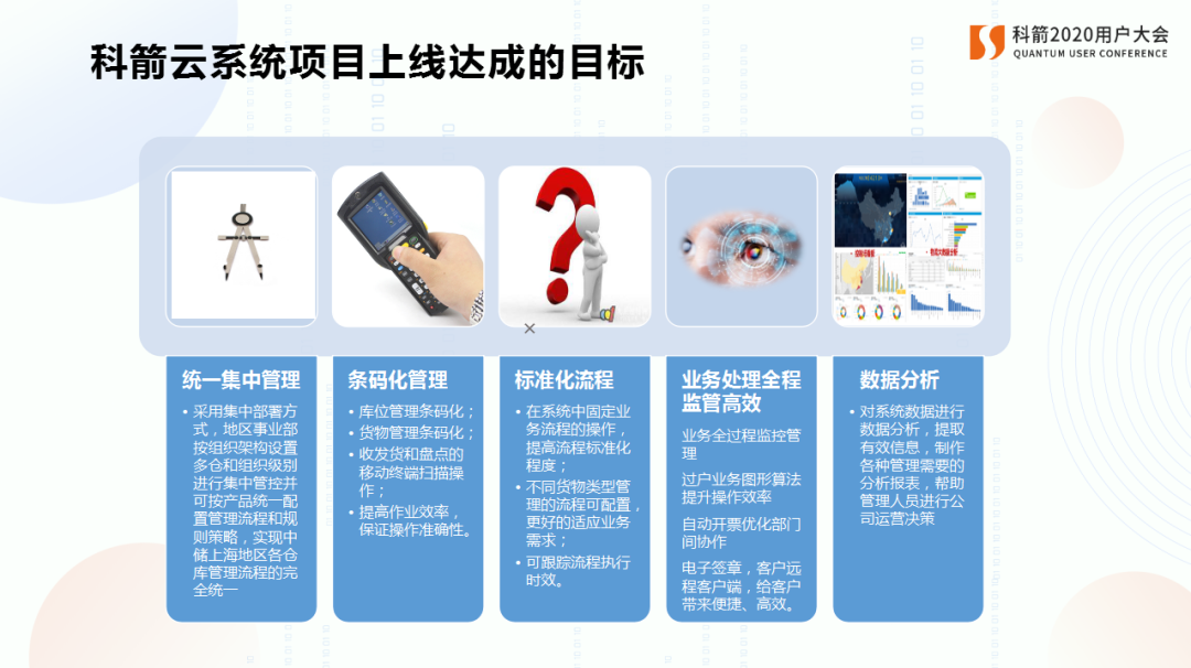 在中儲上海各級領(lǐng)導(dǎo)的高度重視和大力支持下,在各部門的全力配合下,科箭利用創(chuàng)新的Power SCM Cloud供應(yīng)云平臺—倉儲管理云及運(yùn)輸管理云,結(jié)合中儲上海的業(yè)務(wù)特點(diǎn),打造出了全新的、個(gè)性化的云系統(tǒng),為中儲上海供應(yīng)鏈數(shù)字化、智能化升級賦能。項(xiàng)目成功上線運(yùn)行,實(shí)現(xiàn)了流程標(biāo)準(zhǔn)化、可持續(xù)優(yōu)化、系統(tǒng)全面升級 。
