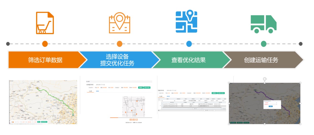 科箭TMS云集成阿里云優(yōu)化引擎后,只需以上四步即可完成運(yùn)輸訂單分配與優(yōu)化,完成運(yùn)輸任務(wù)創(chuàng)建,幫助客戶: