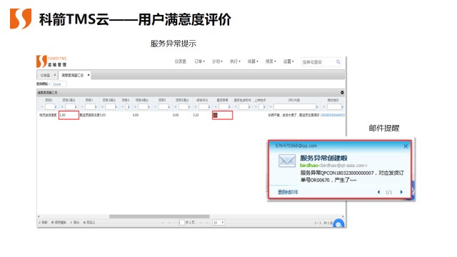 當(dāng)發(fā)貨訂單滿意度評價(jià)有一行評分為1顆星,或任何預(yù)先設(shè)置的滿意度異常標(biāo)準(zhǔn)分值時(shí),服務(wù)異常模塊會生成一條服務(wù)異常記錄,并可通過郵件或其他方式提醒相關(guān)人員,以便及時(shí)處理問題。
