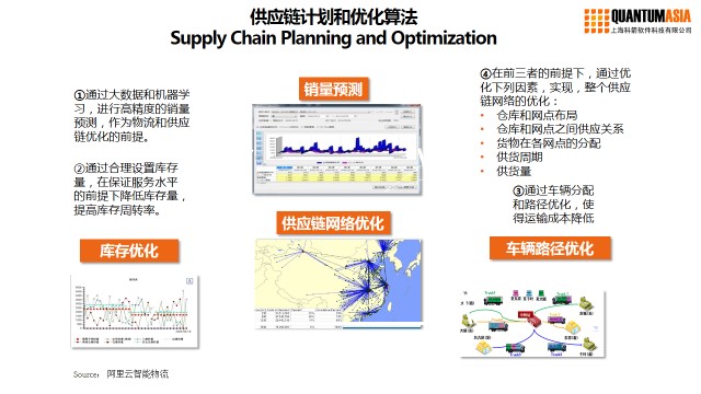 降本增效的驅動在供應鏈的前端,由需求預測開始,對采購,加工等供需進行預測,再滾動到每年每月,甚至是每周,計劃貨品應該放哪里,應該怎么進,出多少等細節,再根據實際的情況進行補充,這些都離不開一些優秀的算法,一組優秀的算法可以幫助企業預測未來動向,節約大量時間及金錢成本。