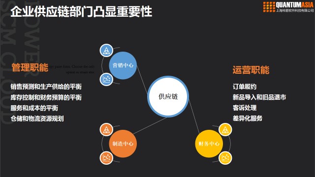 現在供應鏈核心職能我們可以劃分為兩個層面,首先最重要的是管理職能,此職能要做的是整個計劃層的平衡,例如需要協助財務部門控制庫存周轉率、資金占用、物流費用,而面向銷售和市場部門的則是服務的壓力、成本平衡和企業發展拓展的資源整合規劃。另一個職能是繁重的運營職能,比如大量的訂單履約、倉配,產品生命周期,客訴和差異化服務等等,整個供應鏈部門人員不充足,信息化手段相對傳統,運營難度大。而供應鏈的信息化,可以在這兩個層面上,賦能管理職能,減負運營職能。