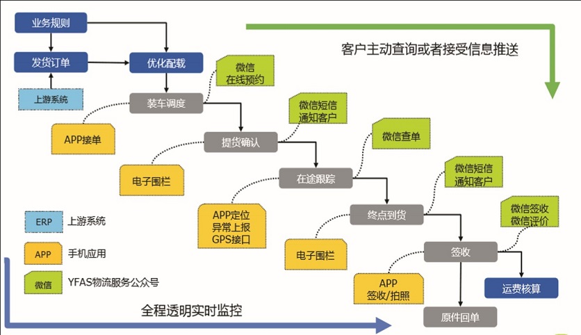 第三,運輸過程全程透明可視。如,通過GPS功能,結合靈活設定的電子圍欄系統自動記錄車輛進出時間,確保運單狀態實時更新,數據完整準確,實現車輛運輸位置的實時跟蹤,也可提前判斷堵車是否會帶來交付風險等。同時,還可根據電腦端、手機APP和微信端等靈活多樣的操作終端,跟蹤確認訂單狀態。此外,基于裝載率和各路徑的統計數據,通過大數據分析和數據深入挖掘,還推動了上游業務MRP層面的優化,有助于進一步推動業務增長。