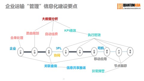 科箭銷售總監(jiān)任捷先生對業(yè)內(nèi)運輸?shù)墓芾碜鞒霭l(fā)言:十年磨劍,TMS云助力企業(yè)運輸管理。任捷先生表示:物流的需求一直在改變,由20年前企業(yè)管理核心圍繞產(chǎn)供銷,物流僅僅起到輔助作用,到十年前企業(yè)開始關(guān)注物流成本,合同物流模式的涌現(xiàn),再到現(xiàn)今線上線下融合,企業(yè)開始轉(zhuǎn)向關(guān)注運輸管理績效。這些轉(zhuǎn)變對信息化的推動是非常明顯的。在當下經(jīng)濟形式不是特別樂觀的情況下,各行業(yè)對內(nèi)控的要求越來越高,供應(yīng)鏈的高度信息化必要性已經(jīng)完全體現(xiàn),但是目前行業(yè)內(nèi)對于供應(yīng)鏈管理還不成熟,由于整條供應(yīng)鏈的不透明,執(zhí)行端能力不夠,管理的規(guī)范性不足,供應(yīng)鏈管控很難達到企業(yè)的要求。