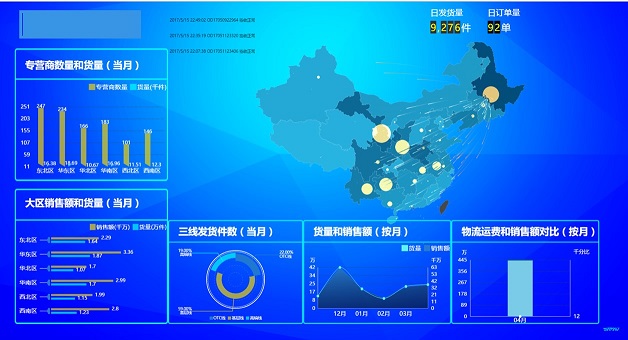 科箭TMS云則通過整合阿里云大數據可視化服務-Data V,幫助B端的企業及物流客戶迅速搭建“物流控制塔(Control Tower)”,有效實現業務數據的“看見”、“預見”到通過大數據分析的“洞見”來改善業務流程,創造更多價值。