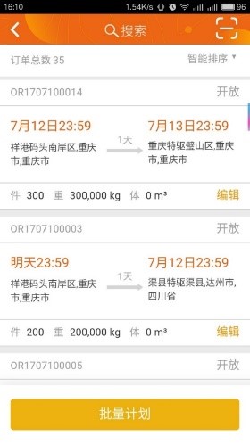 調度人員在APP上可以通過掃碼或者智能查找的功能快速找到需要調度的訂單,同時可以批量的進行調度,如果發現計劃有異常,還可以直接進行計劃的調整,方便又快捷。