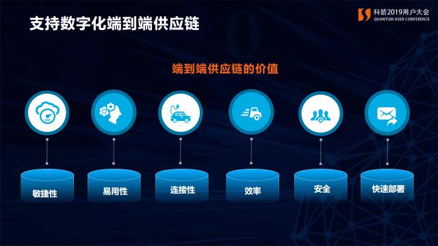 劉總在主題演講中分享了科箭供應鏈云自2015年推出以來,在眾多行業領先企業的應用以及為他們帶來的價值,并將其概括為云平臺端到端供應鏈的“六大價值”: