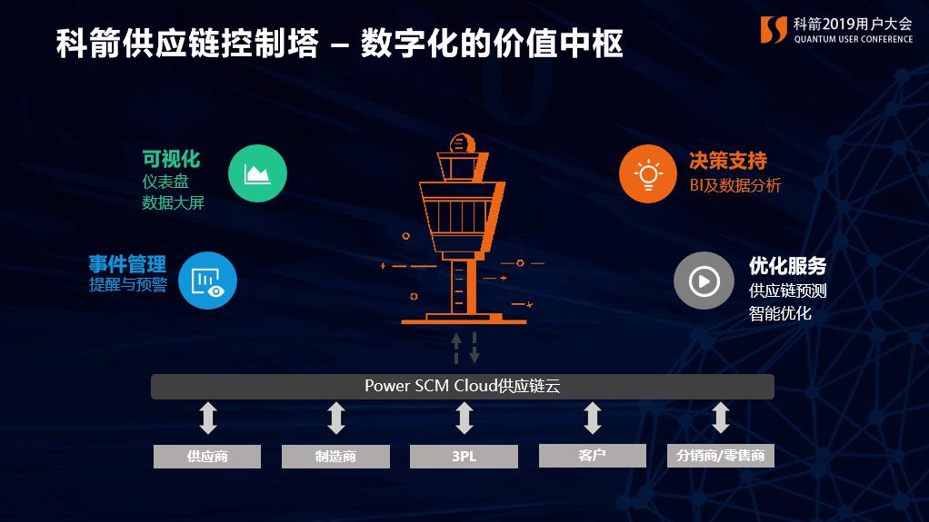 科箭供應鏈控制塔通過提供分析可視、事件管理、決策支持和業務優化的流程和工具整合,幫助企業應對供應鏈的挑戰,減少和及時干預供應鏈執行中的不確定因素,并達到數字化供應鏈支撐下的新供應鏈目標。