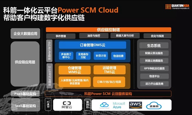 張敏先生介紹了科箭上云的歷程。他說,科箭基于多年的供應鏈服務經驗和產品沉淀,考慮到供應鏈波動性成為新常態、數據量激增、云技術賦能數字化供應鏈,使端到端透明可視化成為現實等因素,為打破單一功能軟件形成的信息孤島,于2017年成功集結科箭的三朵“云”,將訂單管理、運輸管理、倉儲管理三大企業供應鏈應用核心功能整合在一起,推出一體化供應鏈云平臺 Power SCM Cloud,從訂單接入、分配,到倉儲與運輸執行。